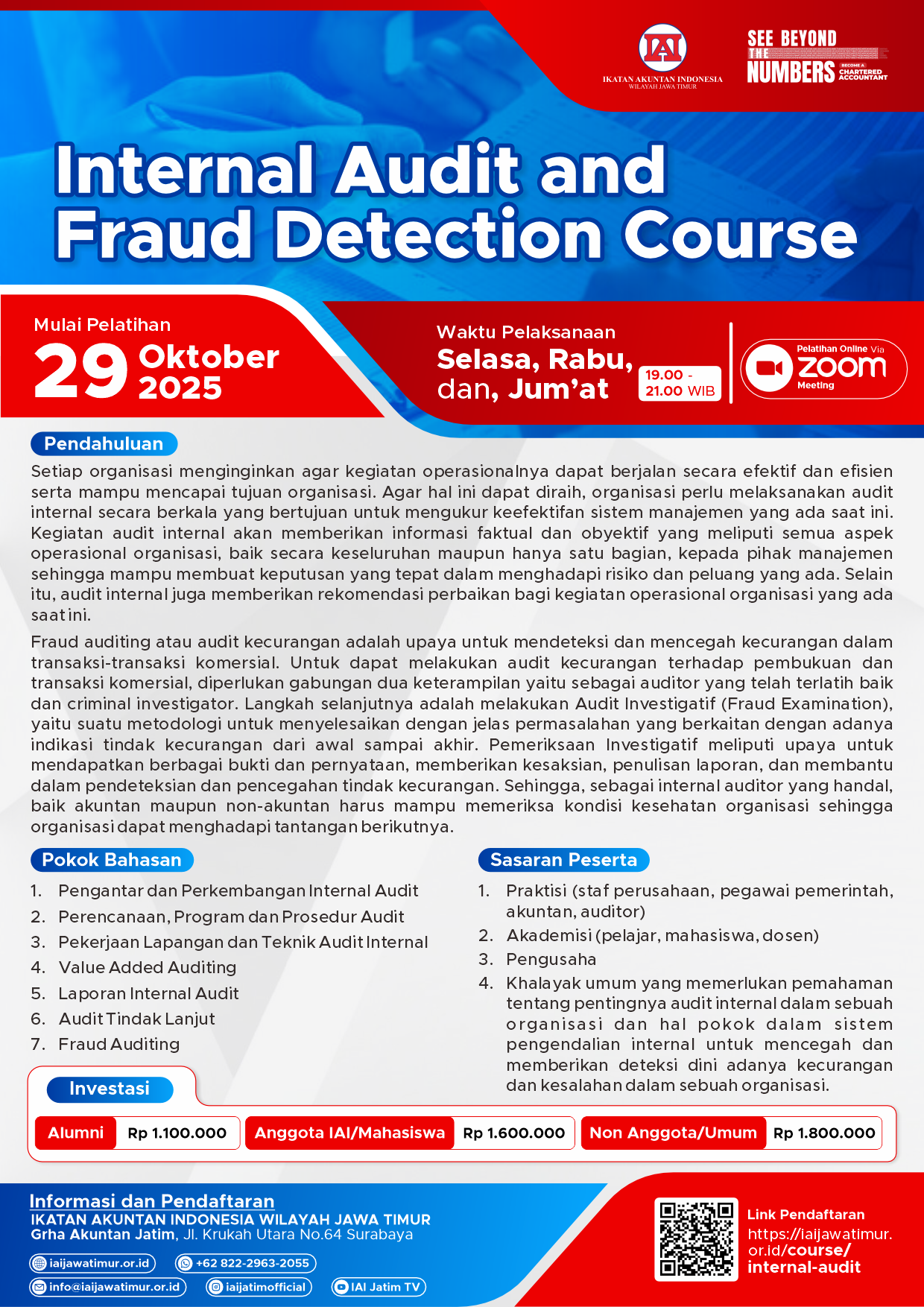 Follow & stay tuned di media sosial kami biar nggak ketinggalan infonya! (Instagram @iaijatimofficial atau customer service IAI Wilayah Jawa Timur Whatsapp: 082229632055)